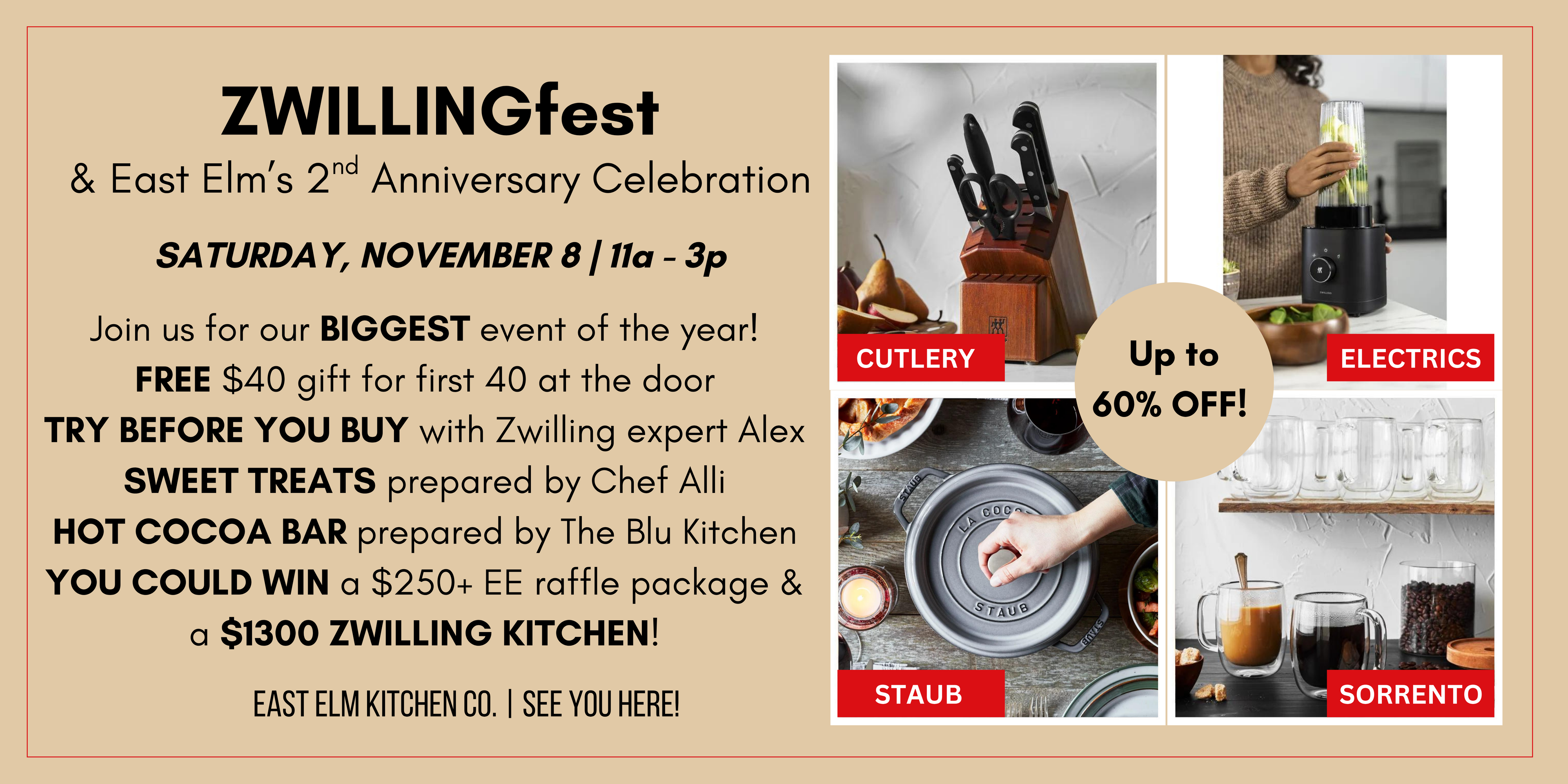 At East Elm Kitchen Co., we believe our most significant, memorable moments happen around the table over a shared meal with our loved ones. Whether you are hosting a family occasion, cooking up a dinner party for friends, or you are simply getting another weeknight meal on the table for your family, we will equip you with the kitchen products and confidence you need to cook and entertain like any pro in your own home kitchen.
